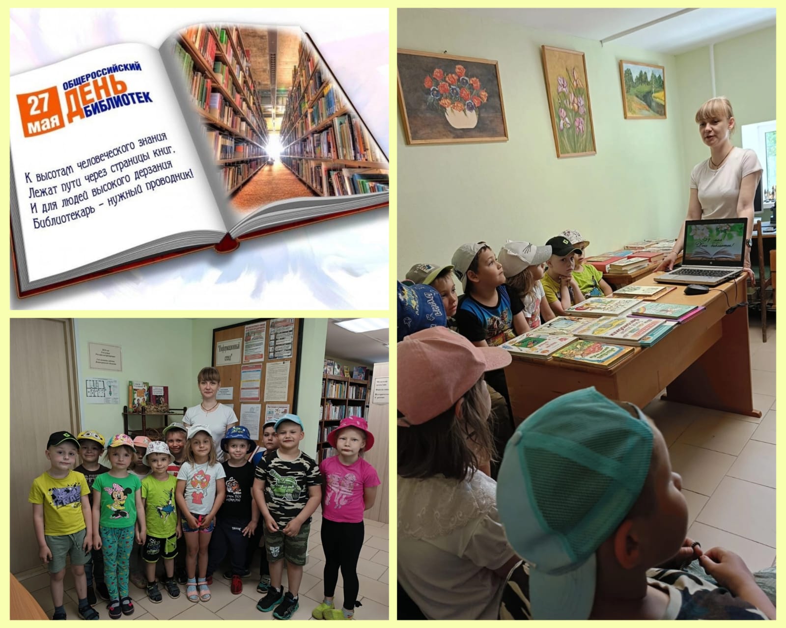 27 мая - Общероссийский день библиотек.![]() Воспитанники старшей группы "Семицветик" совершили увлекательную экскурсию в библиотеку, поздравили нашего библиотекаря Чижикову Анну Юрьевну с профессиональным праздником. Книги окружают нас всю жизнь и являются маленькими лучиками большого света знаний. В книгах — целый мир, и это, как никто другой, знаете вы, наши уважаемые библиотекари. Желаем вам счастья и творческих успехов, душевной радости и благодарных читателей. Пусть ваша работа всегда будет увлекательной и захватывающей. Спасибо вам за наши уютные библиотеки и аккуратные книги! |