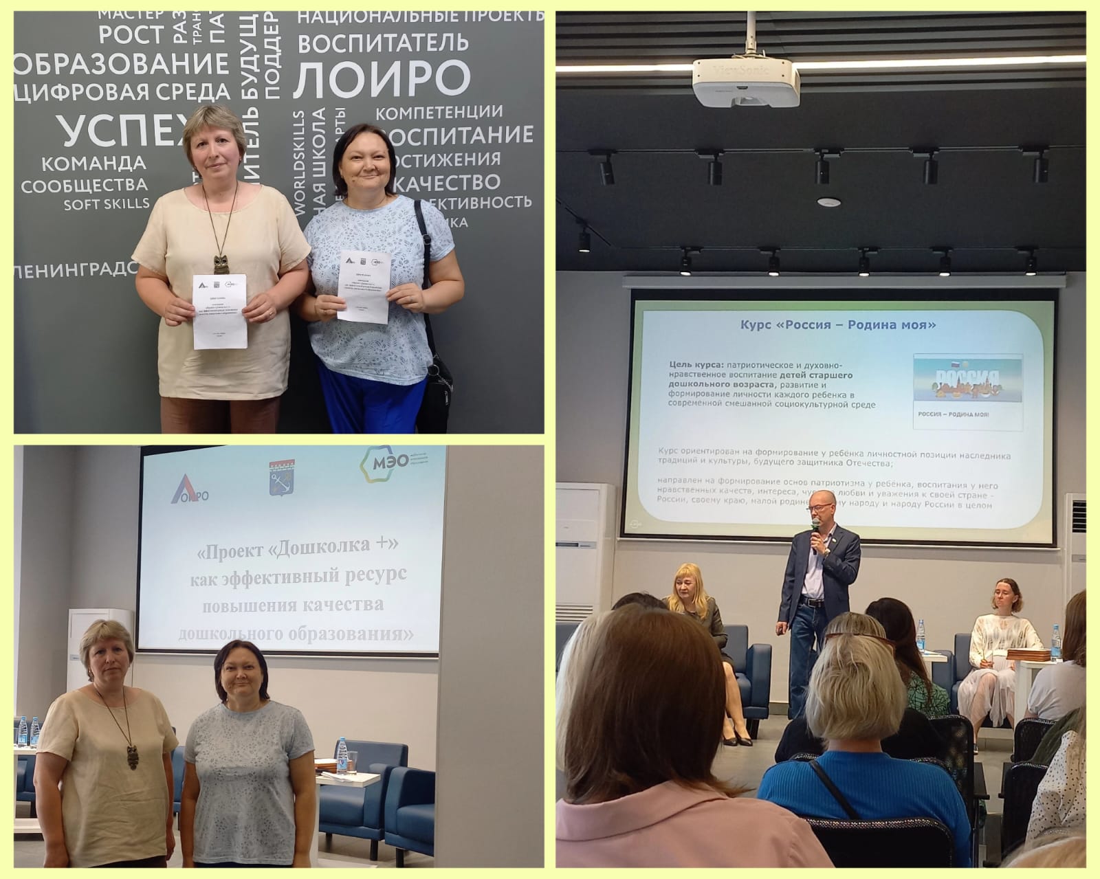 В рамках реализации регионального проекта по повышению качества дошкольного образования «Дошколка+» наши педагоги приняли участие на базе ЛОИРО в совещании на тему: «Проект «Дошколка +», как эффективный ресурс повышения качества дошкольного образования». На совещании были рассмотрены вопросы:- Итоги реализации проекта «Дошколка+» в 2023-2024 учебном году; - Перспективы развития проекта «Дошколка+» в 2024-2025 учебном году; - Результаты проведения Тико-марафона; - Лучшие практики использования цифровых технологий в дошкольном образовании. |