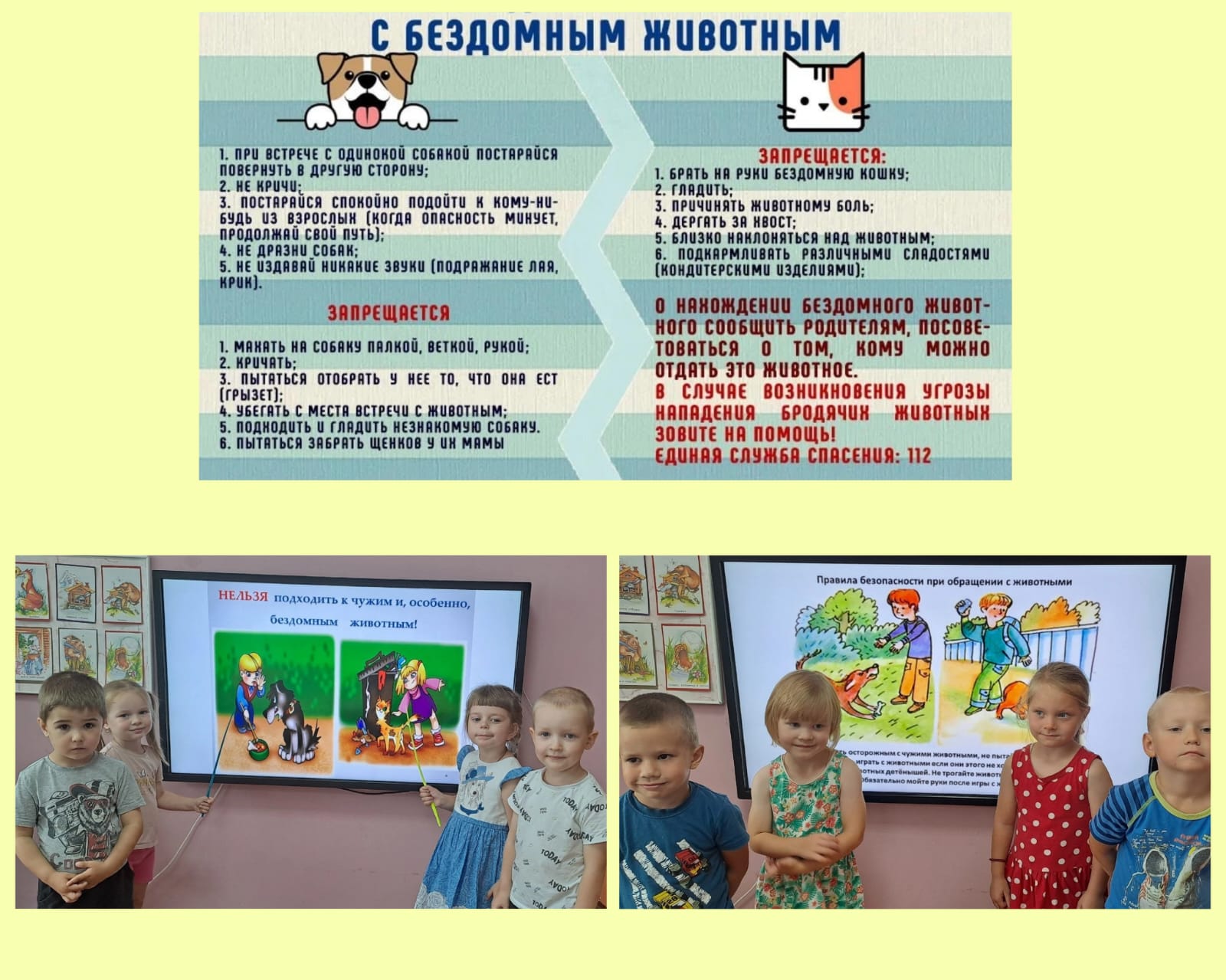 С воспитанниками среднего дошкольного возраста педагоги провели беседу на тему: "Я встретил чужую собаку, кошку", в процессе которой закрепили правила поведения при встрече и общении с домашними и бездомными животными. Уважаемые родители! Ваша задача – научить своих детей безопасности при общении с животными. |