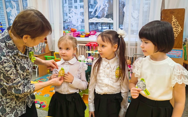 Ребята изготовили памятный значок, соединяющий Ленточку Ленинградской Победы и символ акции - «Цветок Жизни», который повторяет очертания знаменитого мемориала, посвященного детям блокадного Ленинграда и расположенного на 3-ем километре «Дороги Жизни».
