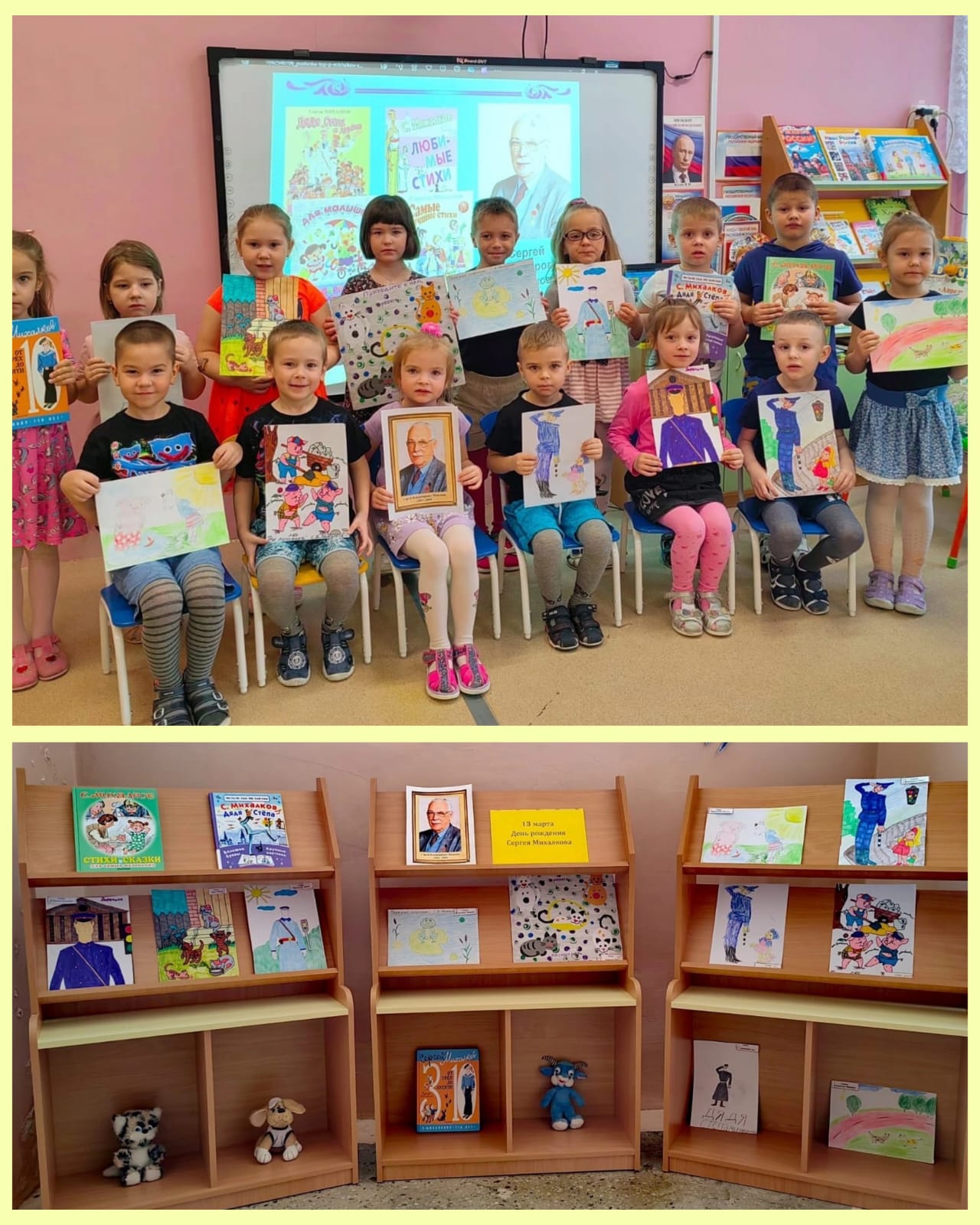 | 14 марта в группе «Семицветик" прошёл тематический день, посвященный дню рождения С.В. Михалкова. В день рождения всеми любимого писателя наши воспитанники познакомились с биографией поэта, вспомнили известные произведения автора. Ребята с удовольствием читали свои любимые стихи: ."Котята' и 'Кошки - мышки" Была оформлена выставка детских книг с портретом писателя, и совместная работа рисунков детей и родителей. Вспоминая стихи поэта, дети вместе с педагогом беседовали по прочитанным текстам, обсуждали поступки героев, отгадывали загадки. День получился не только добрым, но и весёлым, потому что дети провели его в компании замечательных друзей, героев произведений С.В.Михалкова. |