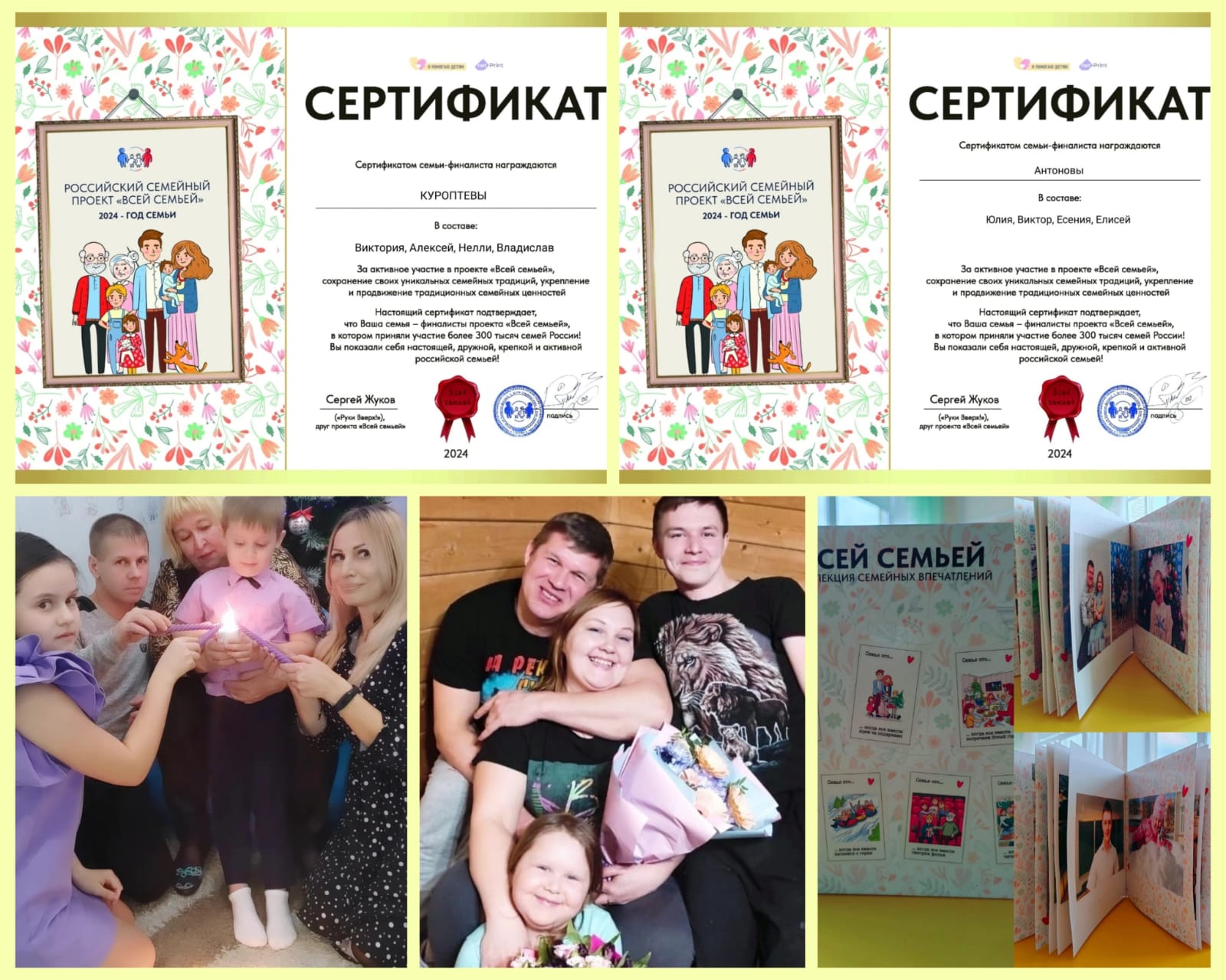 | Завершился Всероссийский семейный проект "Всей семьёй!", который проходил с декабря 2023 года по март 2024 года. Проект приурочен к объявленному Президентом РФ Году Семьи и направлен на укрепление традиционных семейных ценностей среди Россиян. В акции приняли участие семьи нашего детского сада: - Куроптевой Нелли, воспитанницы подготовительной группы "Радуга", - Антонова Елисея, воспитанника старшей группы "Семицветик". В финальном розыгрыше участники выиграли призы и награждены сертификатом за сохранение своих семейных традиций, укрепление и продвижение традиционных семейных ценностей! Поздравляем участников проекта! Благодарим наших участников и желаем всего самого наилучшего! |